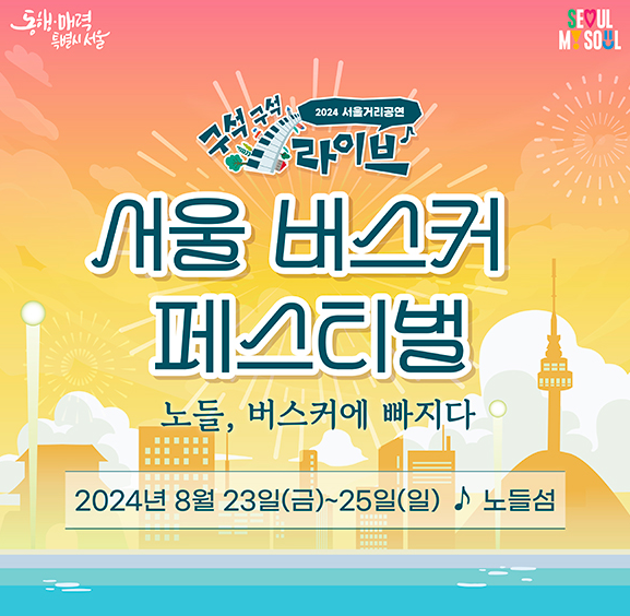 서울 버스커 페스티벌은 서울의 대표적인 거리 예술 축제로 서울 시민과 관광객 모두가 무료로 즐길 수 있는 문화 행사입니다. 또한 <2024 서울 거리공연 구석구석라이브>의 핵심 축제입니다. 본 축제에서는 서울 전역에 버스킹 문화를 활성화시켜 시민들의 문화 예술에 대한 이해를 높이고, 버스킹 문화를 일상과 같이 느낄 수 있도록 다양한 장르의 공연을 진행합니다. 행사는 버스커 콘서트와 노들 버스킹으로 구성되며, 총 38개의 팀이 콘서트 및 릴레이 버스킹 공연을 진행할 예정입니다. 여름을 마무리하며 가을의 정취를 맞이하는 순간 가족, 연인들과 함께 문화의 장이 될 기회입니다.